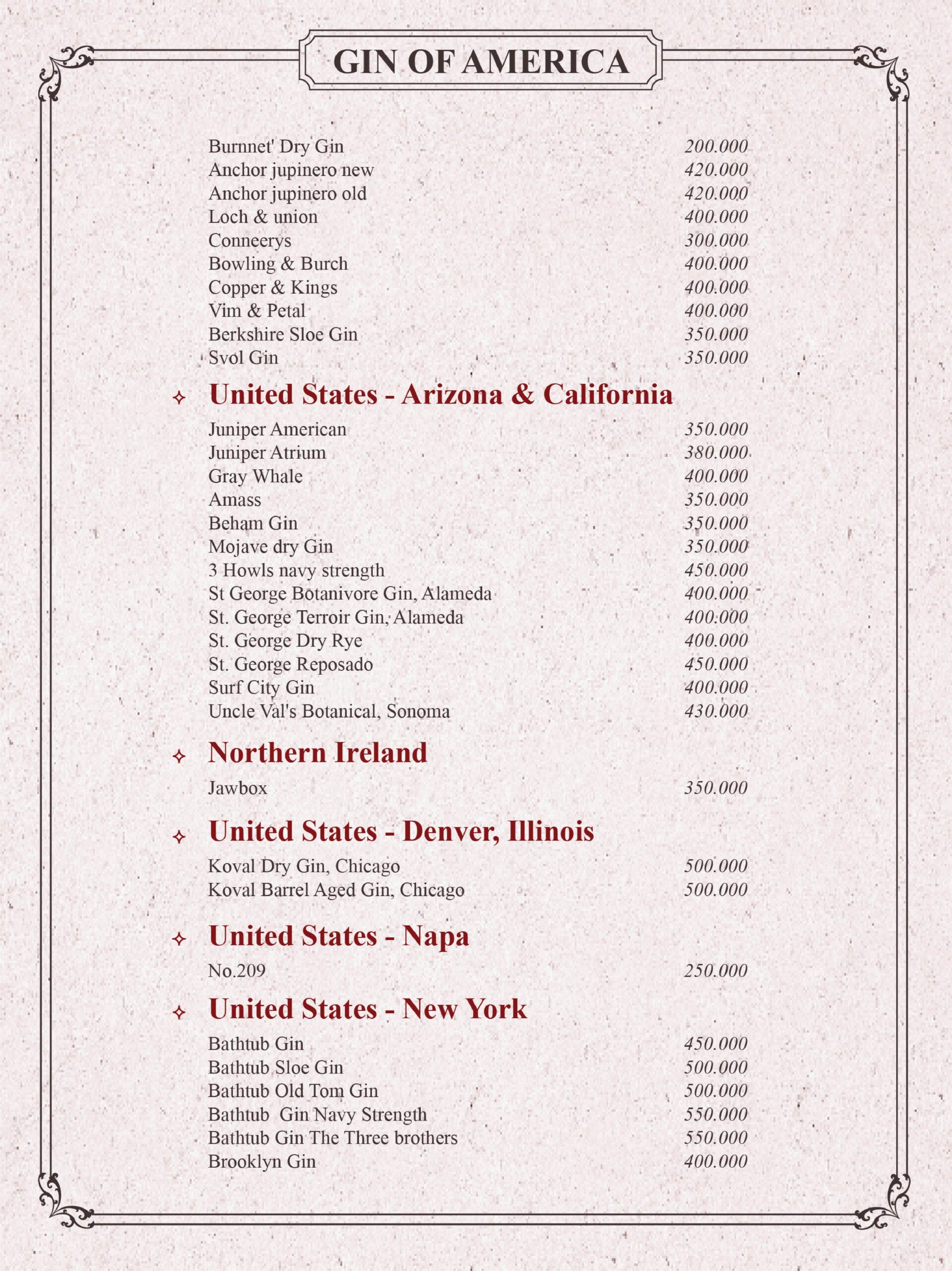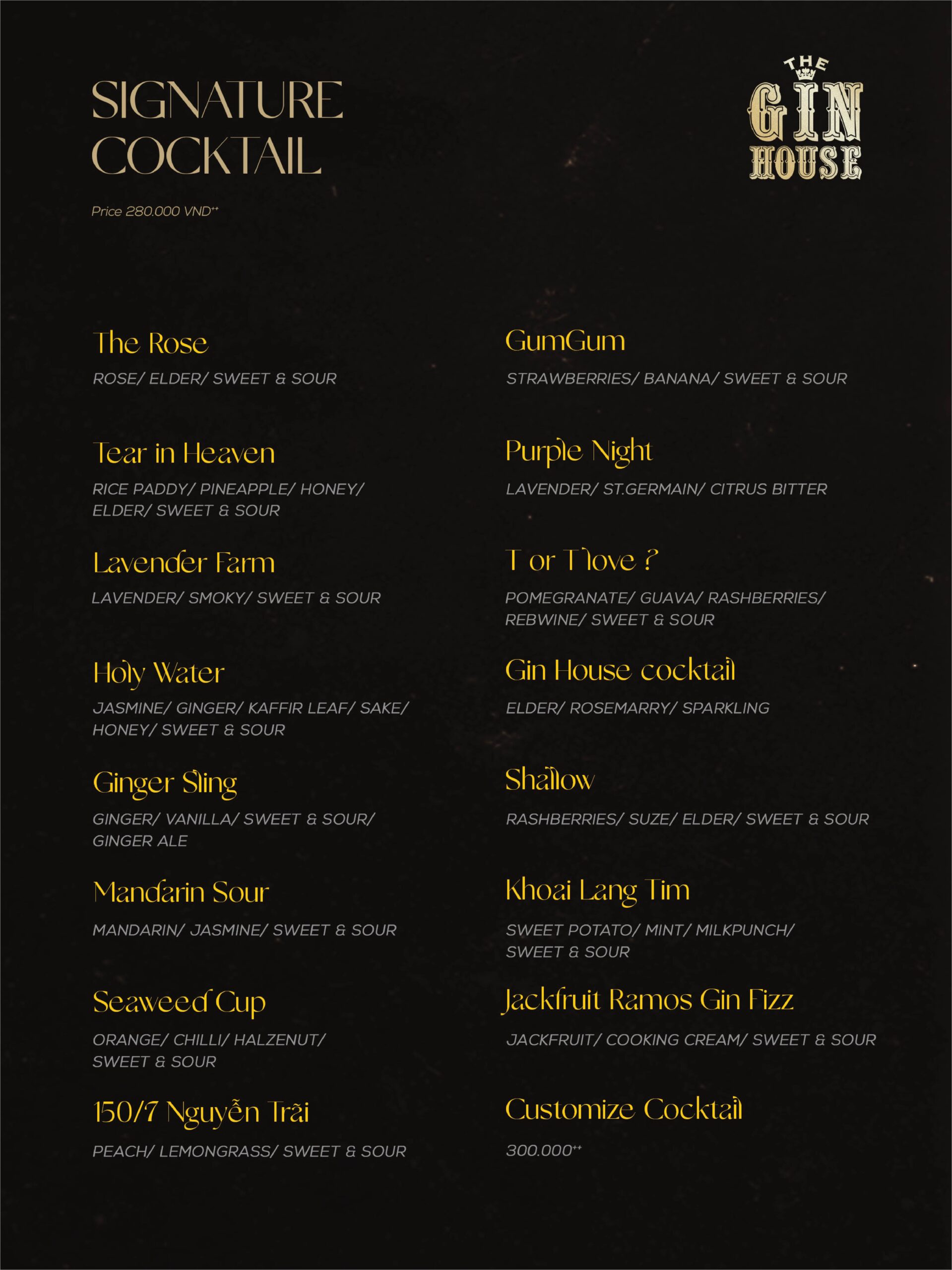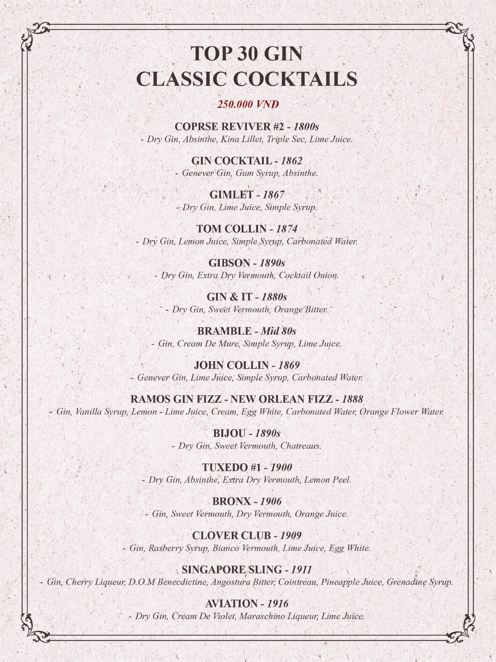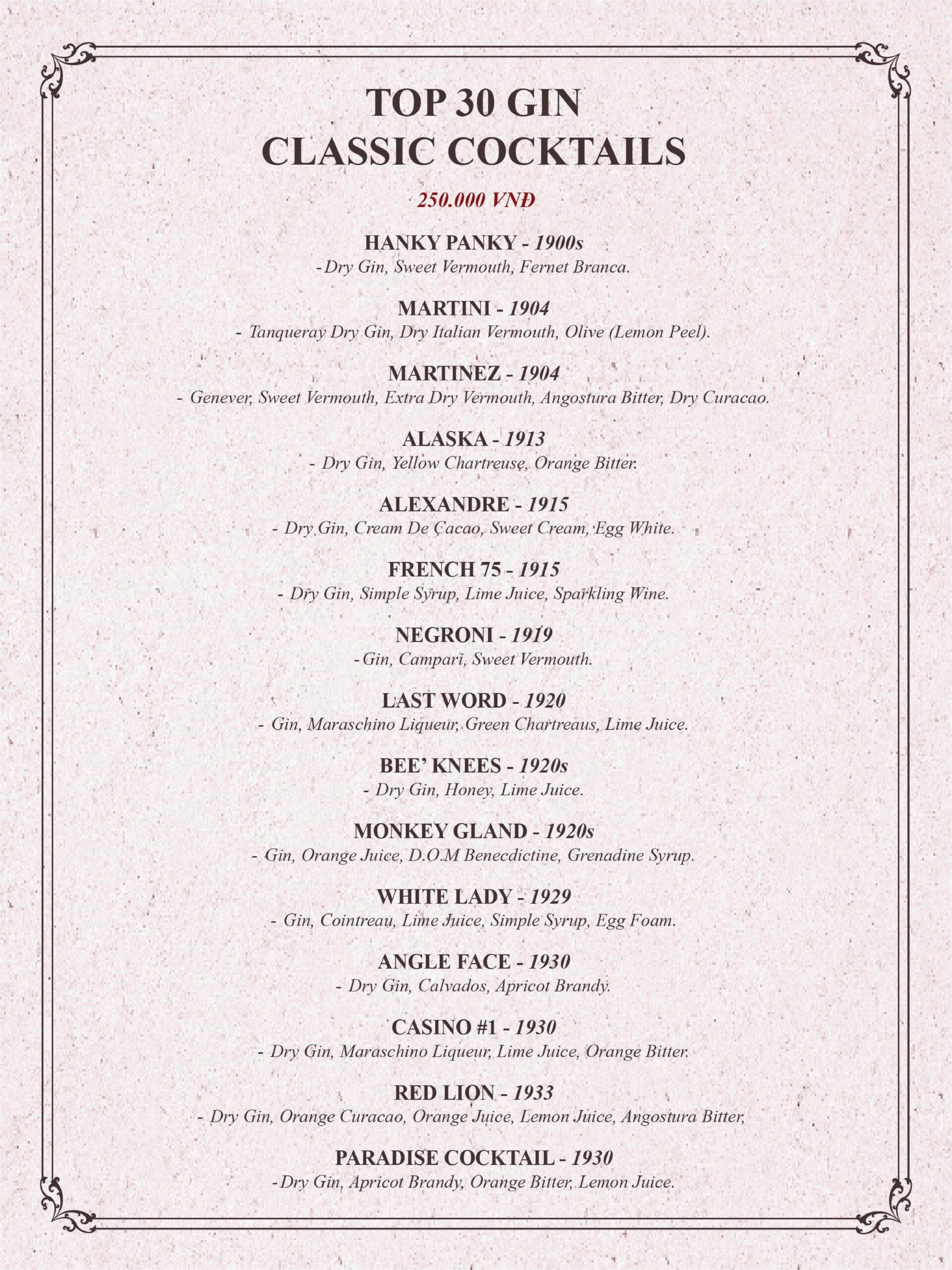 THE GIN HOUSE'S COCKTAIL MENU