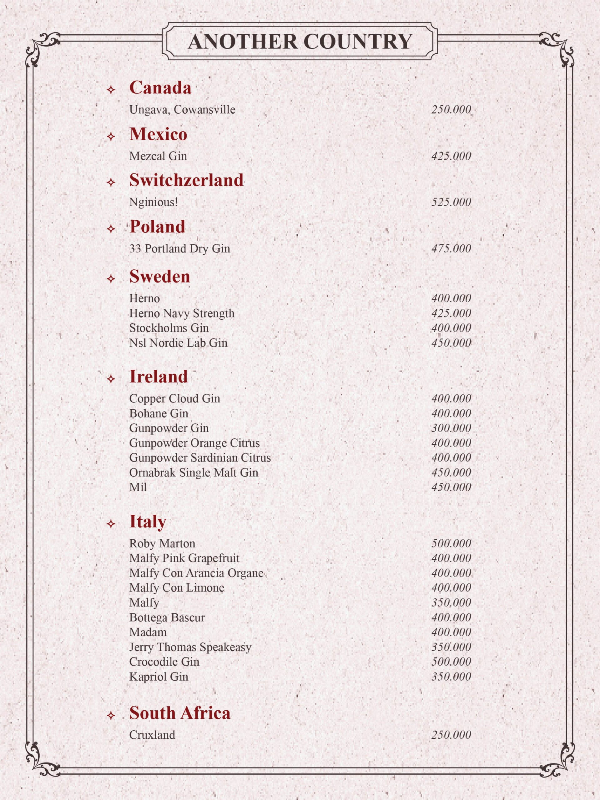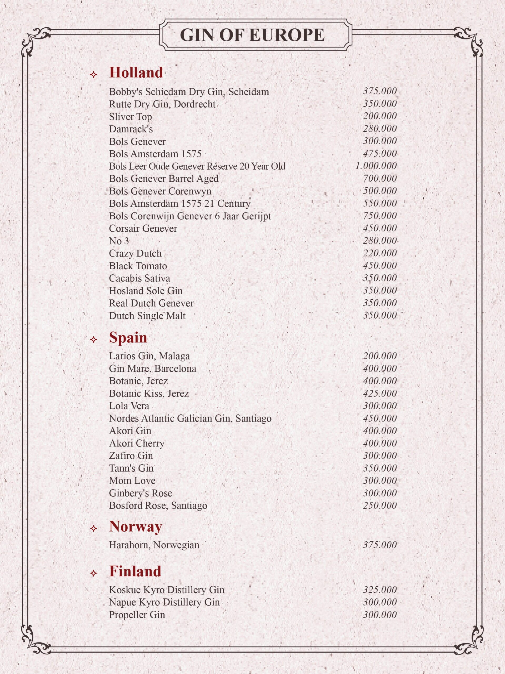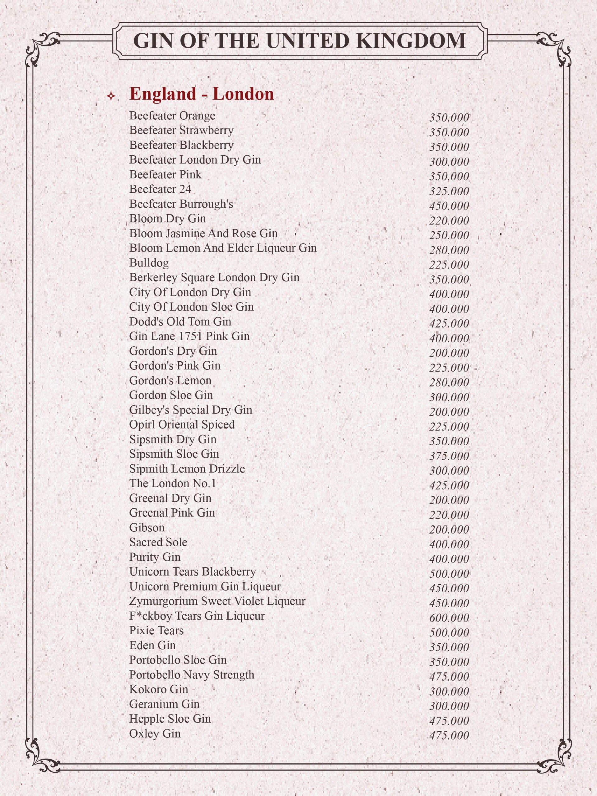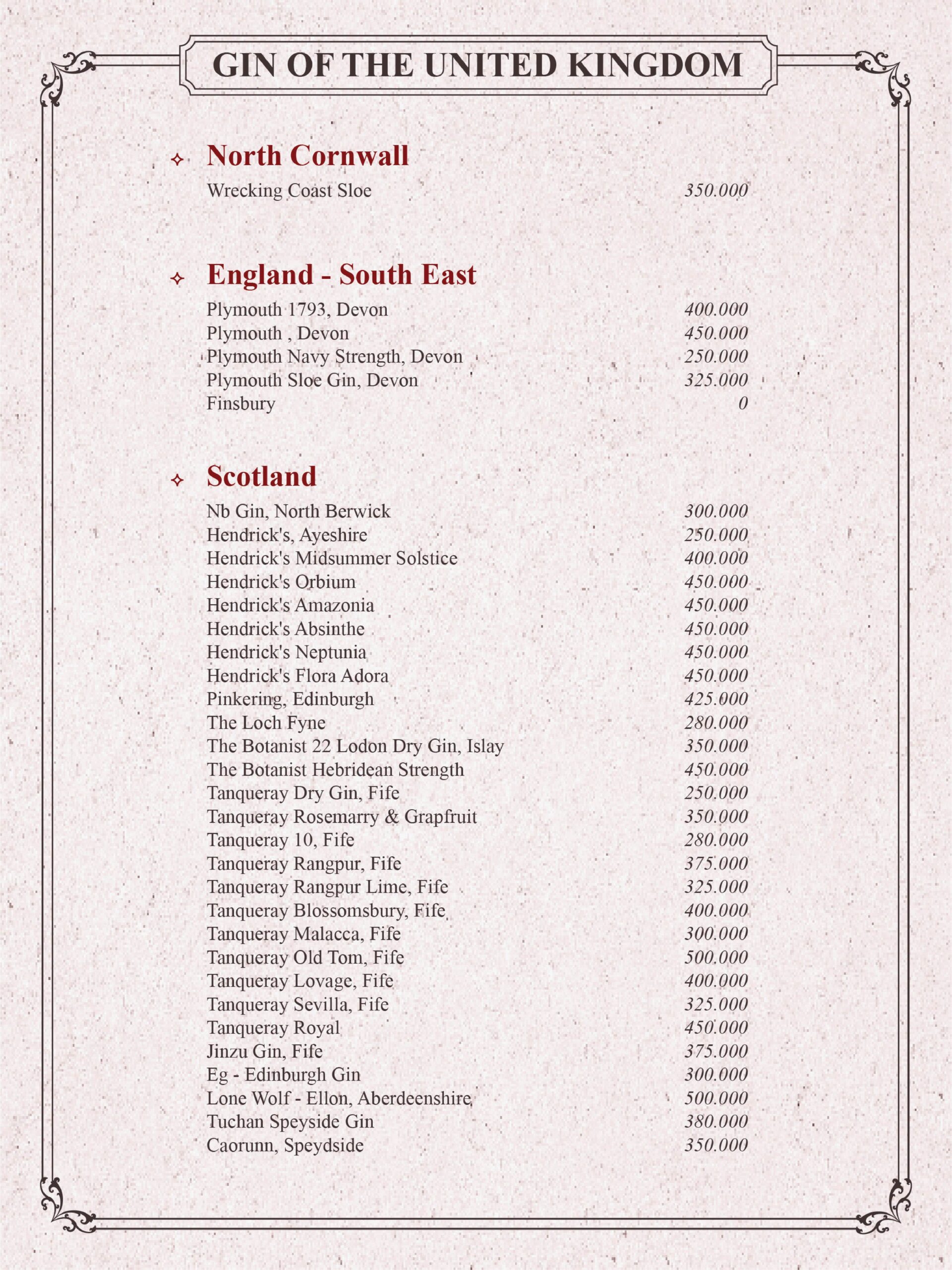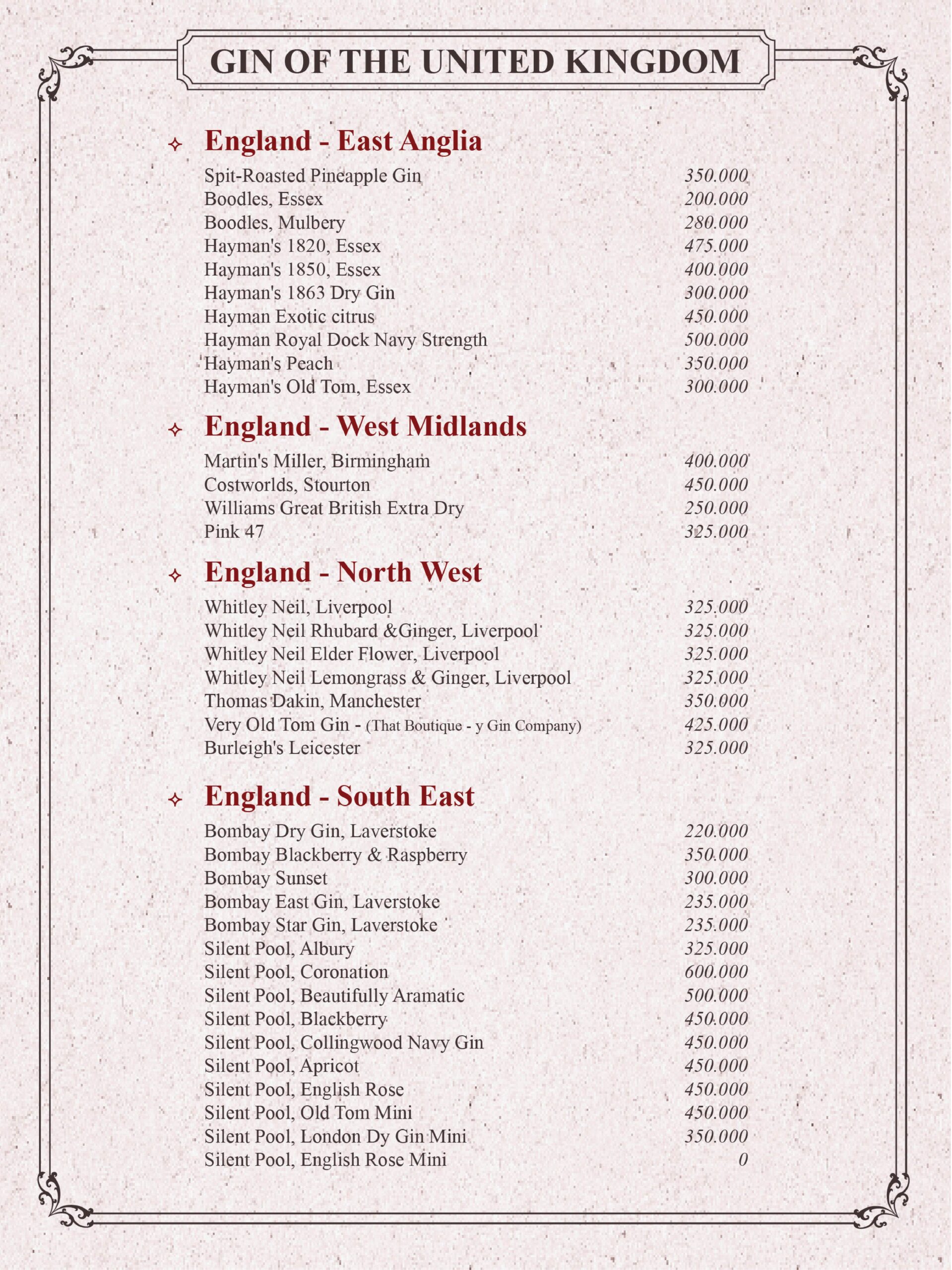 THE GIN HOUSE'S COCKTAIL MENU