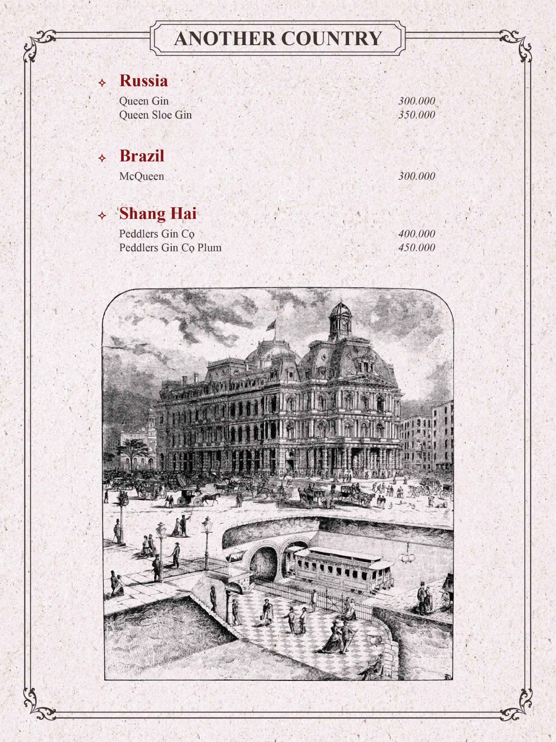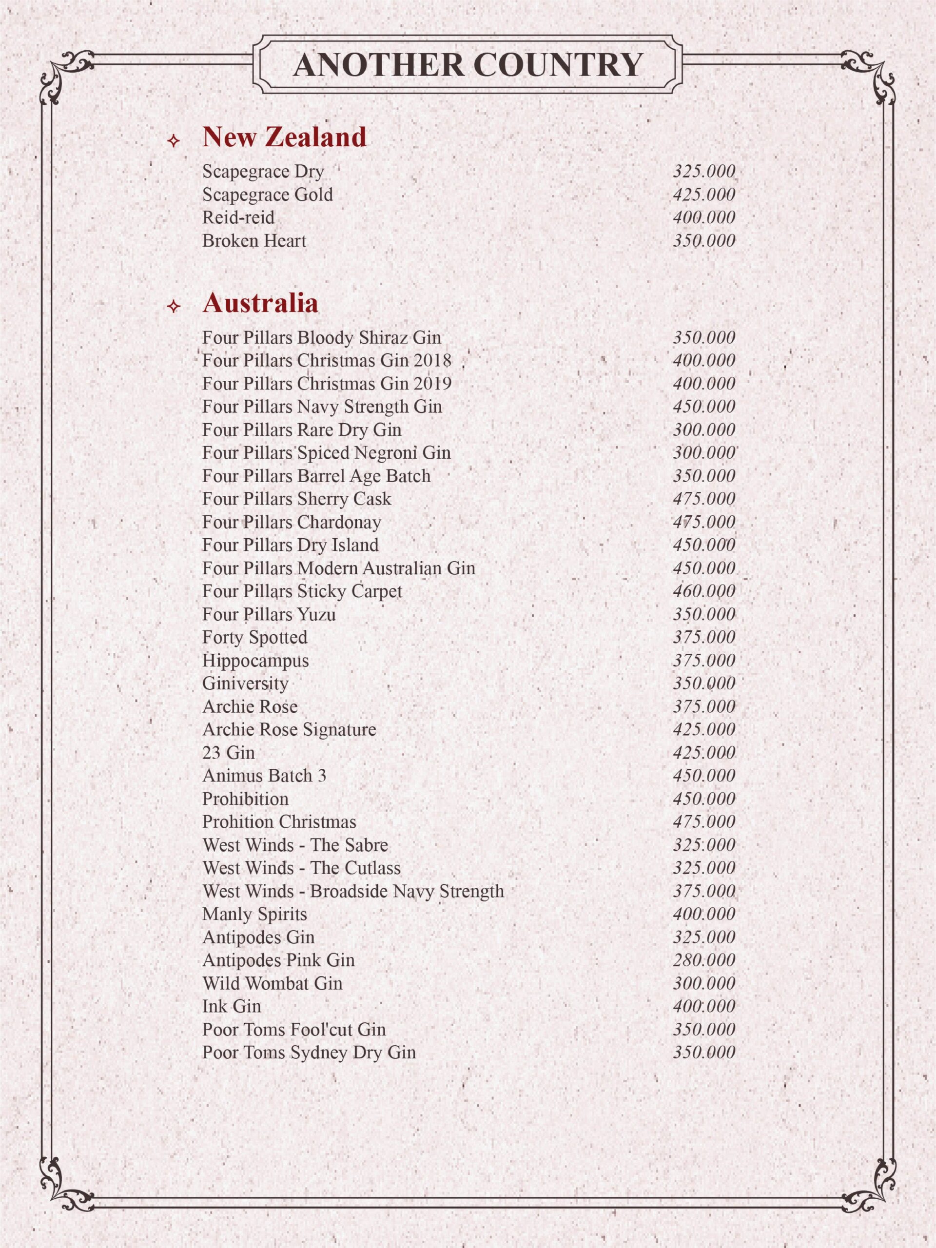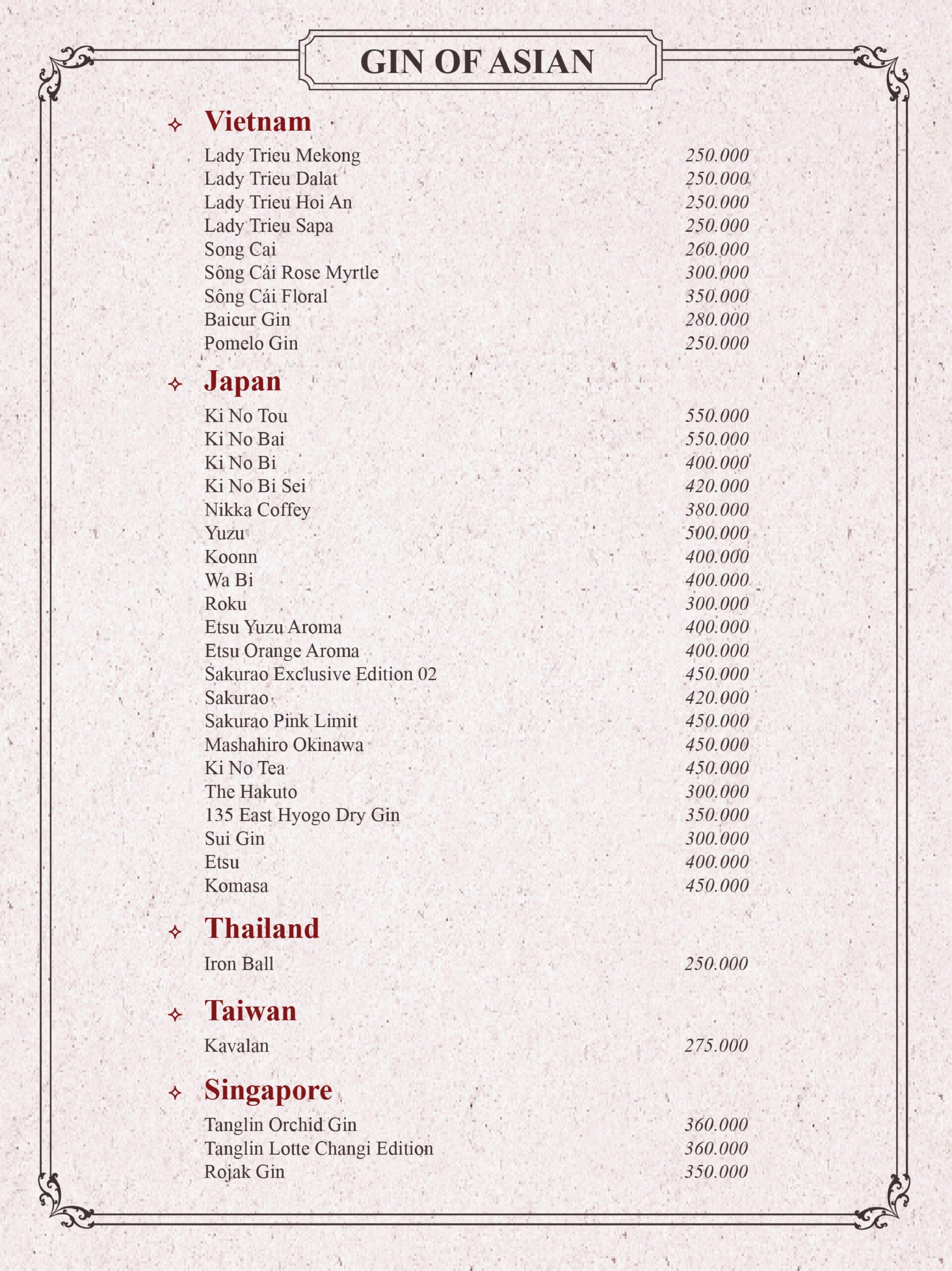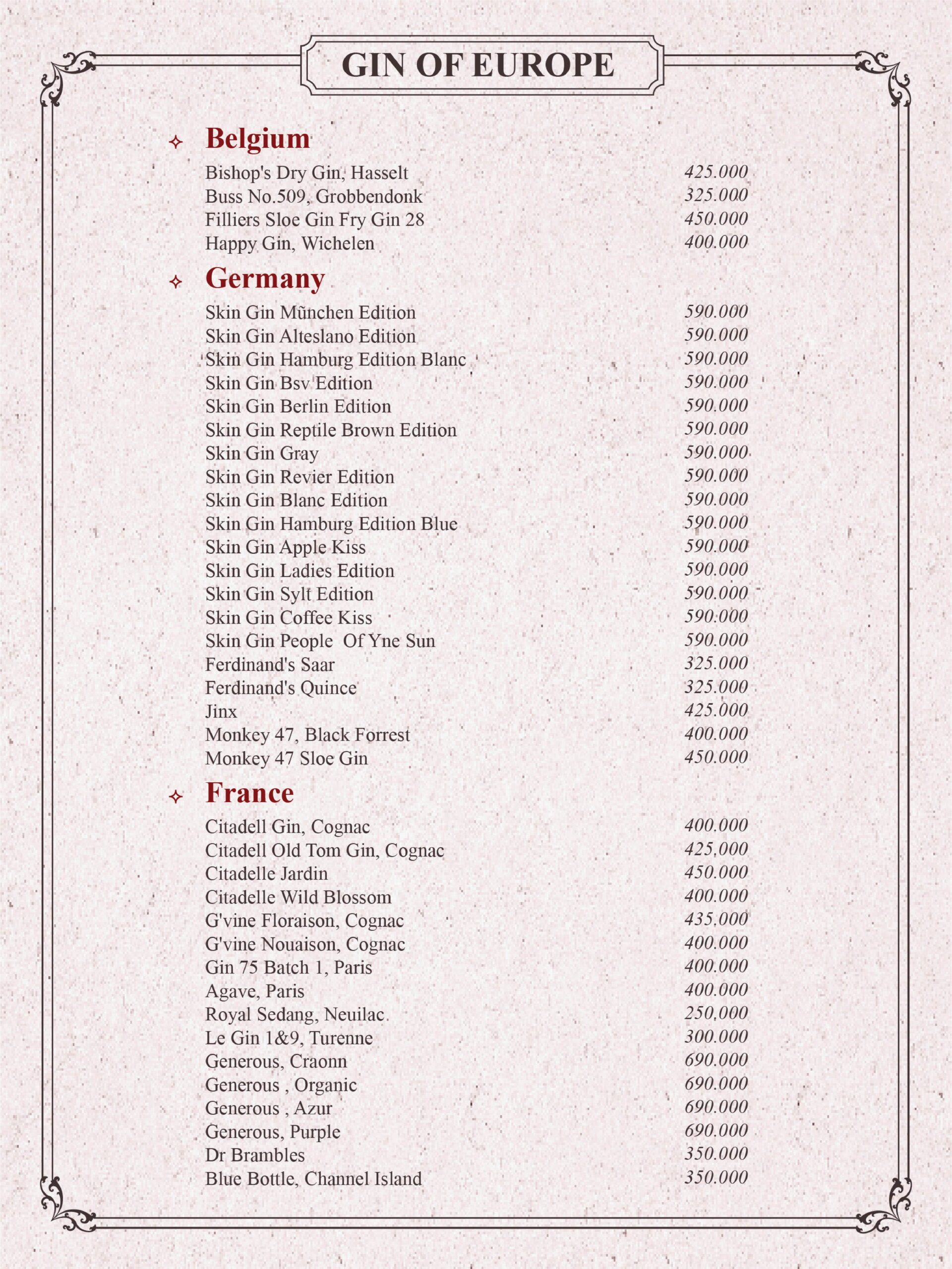 THE GIN HOUSE'S COCKTAIL MENU