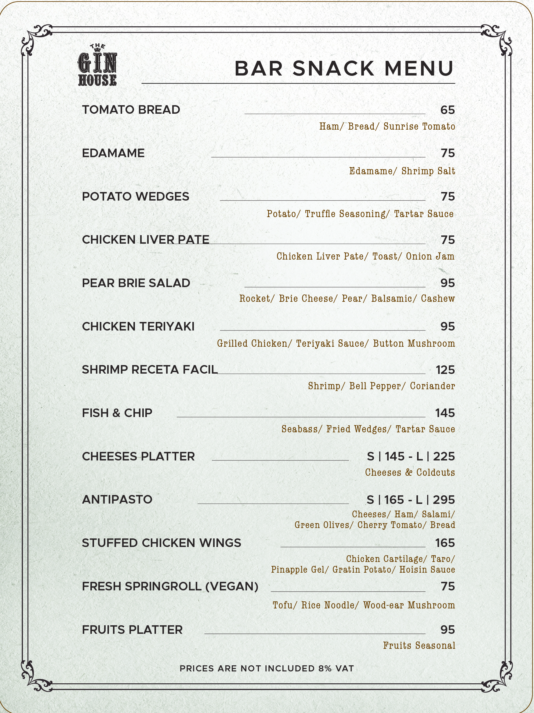 BAR SNACK MENU
